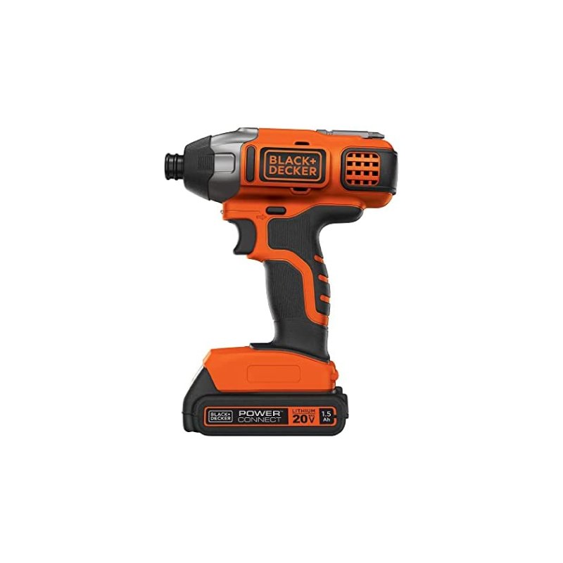 About this item COMPACT AND LIGHTWEIGHT – Helps prevent muscle fatigue. QUICK-RELEASE CHUCK – 1/4 in. hex chuck designed for fast and easy bit changes. HIGH-PERFORMANCE TRANSMISSION – Powers up to 1,375 in-lb of maximum torque, 3,000 rpm, and 3,900 ipm. SOFT-TOUCH GRIP – Designed to enhance comfort and reduce fatigue. POWERCONNECT BATTERY SYSTEM – Interchangeable battery system means you can use one battery for multiple different tools. INCLUDES–(1) BDCI202 impact driver, (1) 20V MAX* POWERCONNECT battery, (1) charger, (1) screwdriving bit.