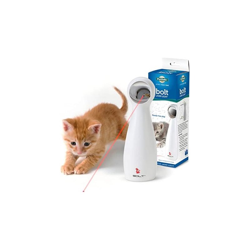 HANDS FREE PLAY: Automatic Mode entertains your cat for 15 minutes and uses mirror to create unpredictable patterns for your cat to chase MANUAL MODE: Pick up the Bolt and play together with your cat for as long as you’d like SAFE FOR YOUR CAT: Tested to meet all safety and quality standards worldwide DISTRACTS FROM DESTRUCTIVE BEHAVIOR: Unpredictable laser patterns for fun, interactive play; it’s so fun your cat will forget about eating houseplants STIMULATING EXERCISE: Random laser patterns and movements keeps your cat challenged and engaged by stimulating her natural hunting instincts to chase, stalk and pounce PREVENT BOREDOM: Prevents boredom and encourages active exercise AUTO SHUTOFF SAVES BATTERY LIFE: Timer automatically turns off after 15 minutes to give your kitten a break and to prolong electronic battery life U.S.-BASED CUSTOMER CARE: Our pet product experts are here to help you and your pet and are available by phone, email or chat if you have any questions